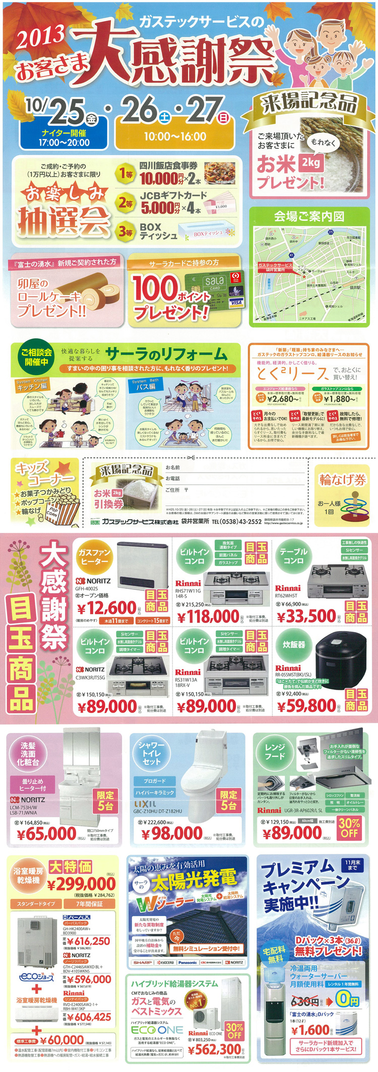 10月25日(金)・26日(土)・27日(日)2013お客さま大感謝祭を開催いたします!!