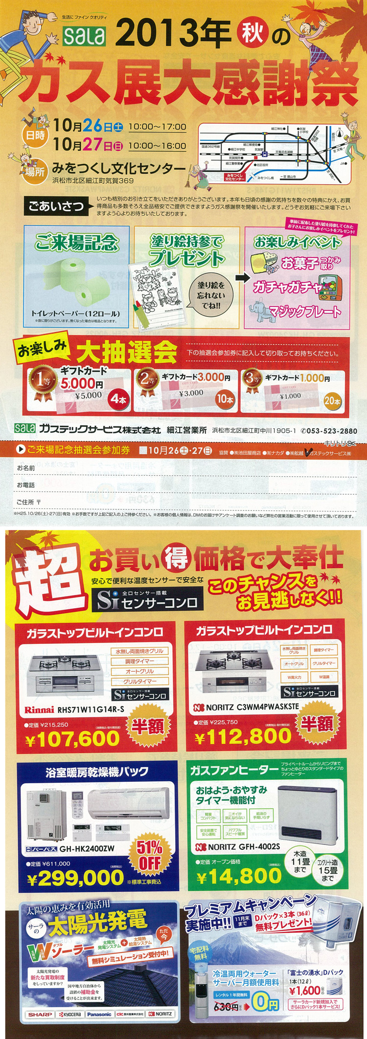 10月26日(土)、27日(日)2013秋のガス展大感謝祭を開催いたします!!
